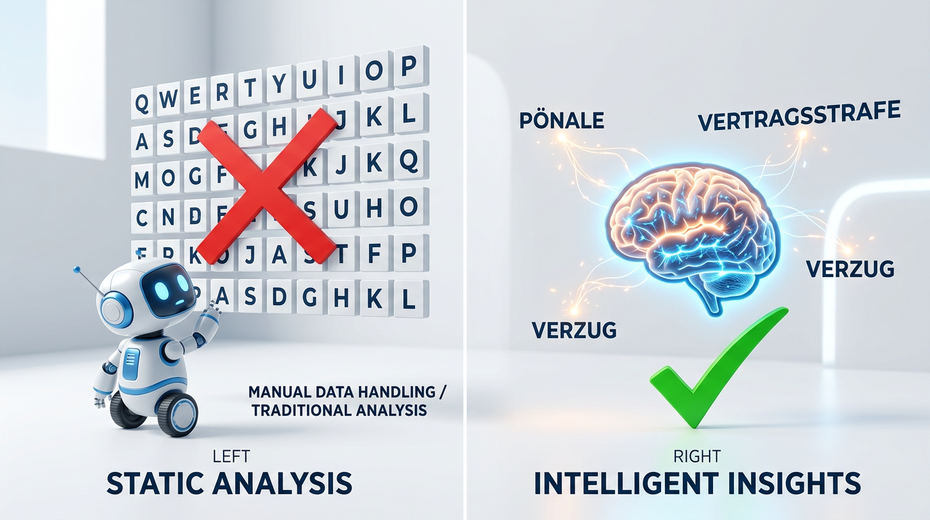 Verständnis | Rein syntaktisch (Zeichenvergleich) | Kontextuell (versteht Fachterminologie und Synonyme) |