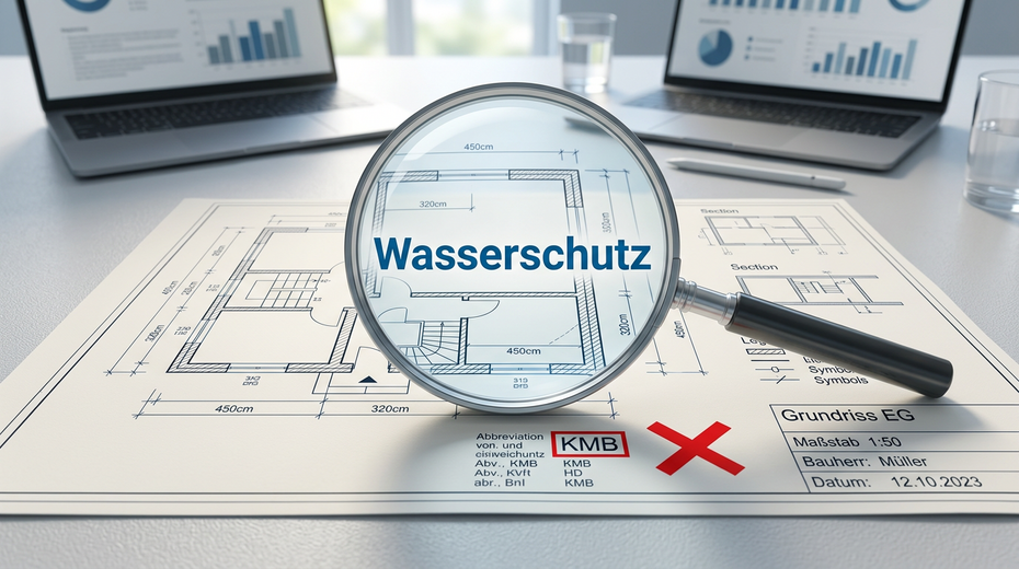 Der Mitarbeiter nutzt die Standard-Suchfunktion (Strg+F) und gibt den Begriff „Wasserschutz“ ein. Die Suche liefert keine Ergebnisse, da im LV ausschließlich der fachspezifische Begriff „KMB“ (Kunststoffmodifizierte Bitumendickbeschichtung) oder „DIN 18533“ verwendet wird. Obwohl die Information digital vorhanden ist, bleibt sie für den Nutzer unsichtbar, da die exakte Zeichenfolge nicht übereinstimmt.